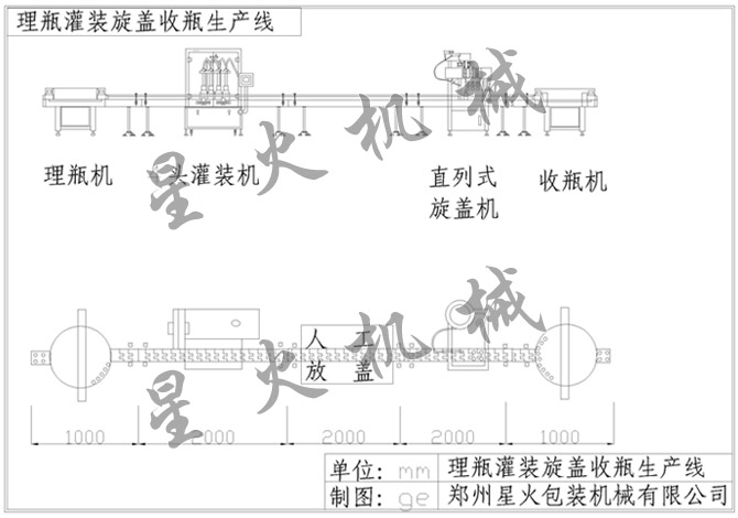 人工放瓶6灌裝壓蓋噴碼PE收縮機