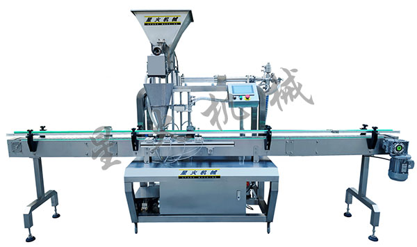 全自動榨菜灌裝機是自動上料機輸送物料至提料機料斗,提料機送料至物料計量器,物料計量器料倉里無料時,提料機自動供料,而物料計量器料倉里滿料時,提料機供料自動停止;螺桿輸送物料至計量容器后,送料至灌裝裝置;罐子輸送裝置將清洗過的空罐輸送至灌裝頭下進行醬菜灌裝,再通過注油管道加油,而后進行封口。