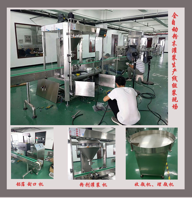 粉末灌裝生產(chǎn)線包扣理瓶機-自動上料機-單頭粉末灌裝機-鋁箔封口機-旋蓋機-收瓶組成,適用于瓶裝豆奶粉、蛋白粉、豆?jié){粉、米粉、咖啡粉、蘇打粉、藕粉、核桃粉、膨松劑、泡打粉、酶制劑等灌裝封口和旋蓋等工作,是一款經(jīng)濟實用的灌裝封口旋蓋生產(chǎn)線;瓶裝粉末灌裝生產(chǎn)線也可選配貼標機、噴碼機、全自動封箱打包機等設(shè)備實現(xiàn)無人化灌裝包裝流水線